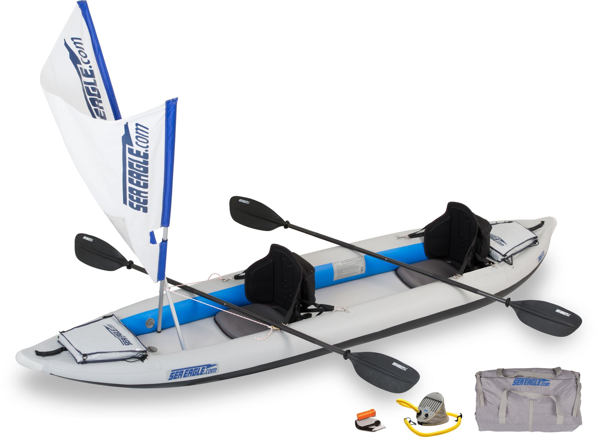 * Includes 2 inflatable comfortable Seats, a carry bag, and SE unique QuikSail for effortless sailing.